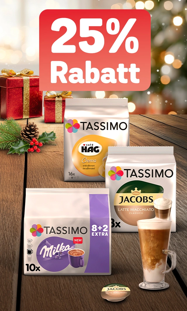 Du bist auf der Suche nach einem Rabatt für TASSIMO Kaffeekapseln? Hier bist du richtig! Hier findest du alle aktuellen Kaffeekapsel-Angebote und Aktionen von TASSIMO. Von günstigen Kaffeekapseln bis hin zu kompletten TASSIMO Deals, einschließlich Maschinenpaketen im Angebot. Bei TASSIMO kannst du auch Multipacks wählen, TASSIMO Kapseln in großen Mengen kaufen oder dich für Kaffeevielfalt-Pakete entscheiden, um den Preis noch weiter zu senken. Bei TASSIMO findest du deine Lieblingsprodukte zum besten Preis.