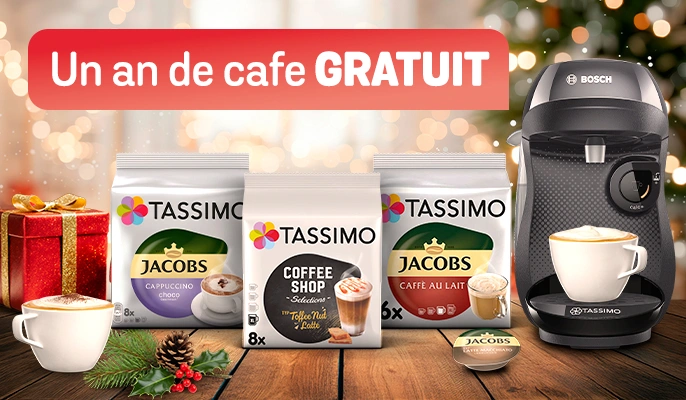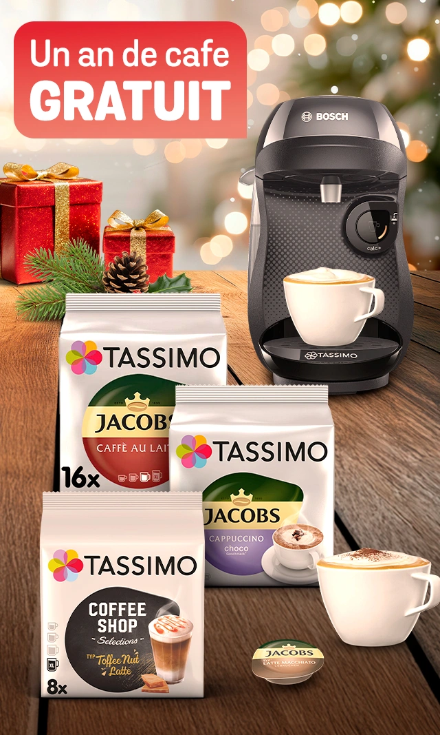 Toutes les dosettes de café officielles TASSIMO, les T DISCs, sont compatibles avec chaque machine TASSIMO. Nous proposons une large gamme de types de café et de boissons chaudes. Du café classique, aux dosettes d'espresso, dosettes de cappuccino et dosettes de latte, en passant par les cafés spéciaux comme le cortado ou les dosettes de latte glacé. Ou choisissez parmi nos différents mélanges de thé ou dégustez un chai latte épicé. Envie de vous réchauffer lors des soirées fraîches, essayez un délicieux chocolat chaud ! Toutes ces dosettes sont créées en collaboration avec des marques de café exclusives. Découvrez nos dosettes Cadbury, Jacobs, L'OR ou Costa. Consultez également nos dosettes les plus vendues.